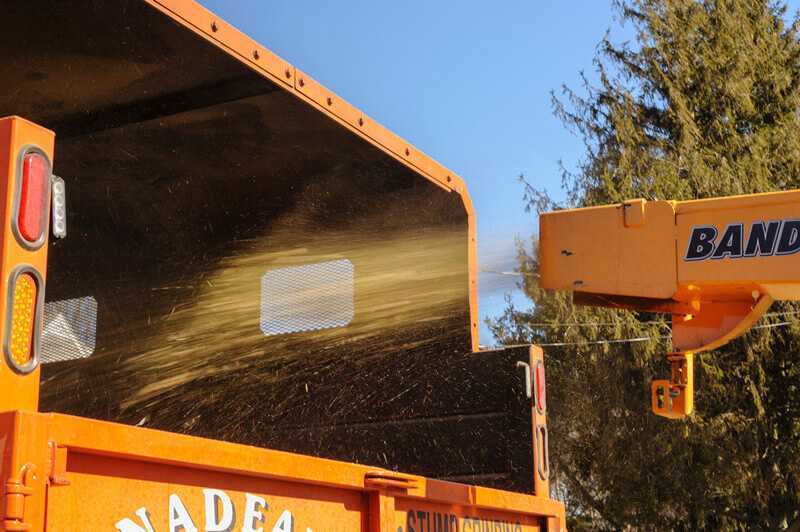Depending on the configuration, the typical chip size is from 1 inch (2.5 cm) to 2 inches (5.1 cm). The chips will exit the chipper through the chute into the truck’s dump container or left on the ground to improve soil organic matter.